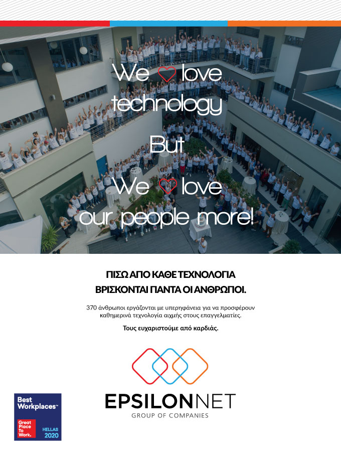 Η Epsilon Net βραβεύτηκε για 6η συνεχόμενη χρονιά από τον διεθνώς αναγνωρισμένο οργανισμό GreatPlace to Work, ως Best Workplace Hellas 2020, διατηρώντας μία από τις κορυφαίες θέσεις στην κατηγορία άνω των 250 εργαζομένων και αποδεικνύοντας για άλλη μια φορά τον ανθρωποκεντρικό χαρακτήρα της.